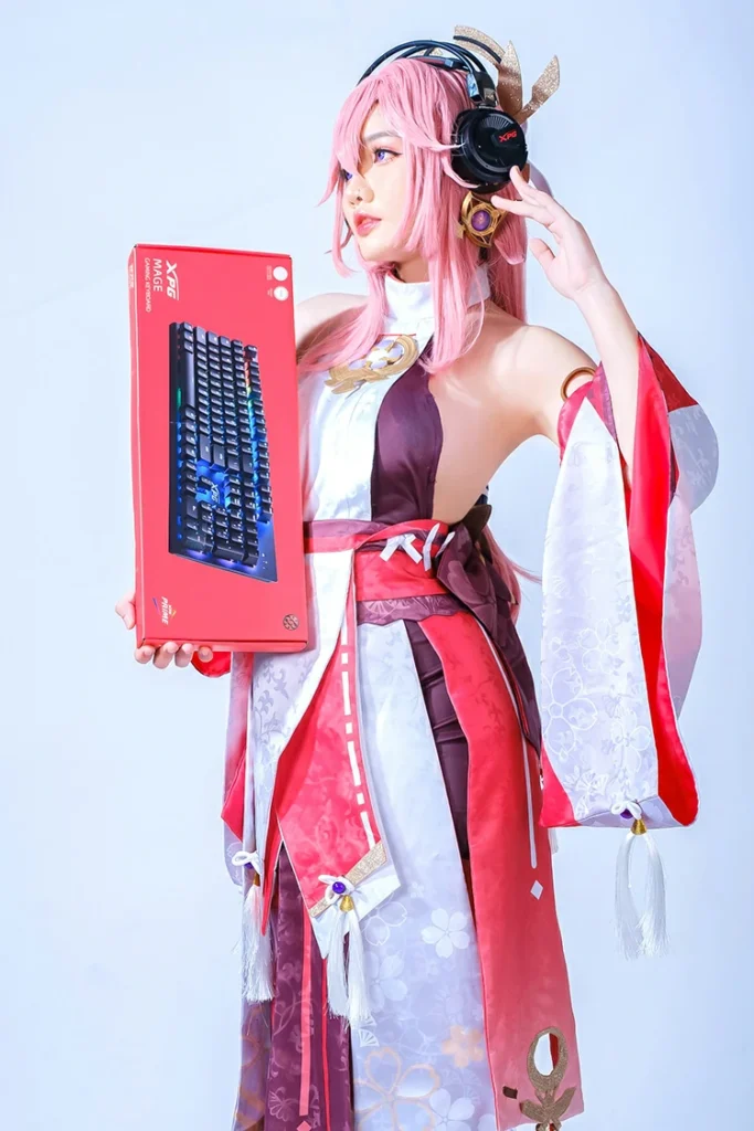 Step into a world where elegance and innovation collide. This stunning Yae Miko cosplay captures the radiant charm of the shrine maiden, blending her mystical allure with a lineup of cutting-edge tech gadgets. From glowing screens to sleek devices, every frame highlights the harmony between traditional grace and modern sophistication. A perfect fusion of fantasy and technology — where Yae Miko shines brighter than ever.